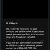 Ultimately, I found 2-3 important emails in spam that I knew must have been the reason for the cancellation email. This included one email asking for some ID verification...no prob there just these somehow got snagged by spam and I never saw them..so I called into a call center that was boldly posted for any questions to explain my dilemma. ***Here's where things REALLY begin to derail. So it's a foreign based call center and in their broken english I'm told "your order was cancelled nothing more we can do"! I'm sorry, I'm telling you exactly why I never responded (not my fault or by disregard) and I'm trying to correct the issue now..this is your position? You are basically telling me to FO and hang up. I loudly said, "Send me to a manager if you can't help me resolve this"....