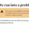 I am working toward a python certification. I purchased a set of six practice tests. I took the first one and it was full of errors (no indentation which makes the code ambiguous to the point of being unreadable). I thought it might be just the one course, so I started the second but it too was full of errors. Udemy says I can request a refund within 30 days; but when I attempt to do so on their website; it says I have watched too much of the course. The "contact us" link just takes you to a chatbot that says it is unable to answer your question. They have no support phone number.