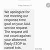 The rep on the phone and their supervisor clearly didn't care and they made it very clear that I had no recourse. I couldn't dispute the charge on my cc because I paid installation fee not to AAA but to a 3rd party provider who actually was pretty good and arrived fairly quickly so I can't penalize the guy for doing his job. It's AAA that found a very clever way to get out of providing a service they claim and advertise to provide but don't in reality.