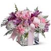 This order included yellow roses, red tulips, red spray roses, yellow carnations, green button mums, lavender asters, and cushion mums, arranged in a low and compact clear glass cube, priced at $79.99, plus three latex balloons at $5.97 ($1.99 each), excluding delivery and service fees. Next to the chosen price point on our website, it clearly states: “Flowers are designed to be delivered as close to the arrangement pictured as possible.”